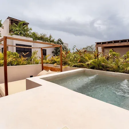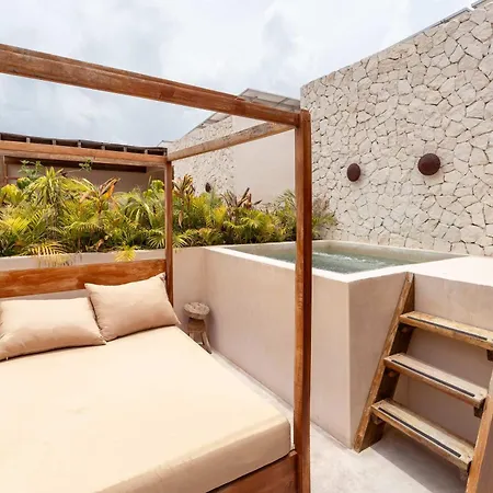 Sim, uma banheira de hidromassagem aguarda os hóspedes na propriedade de Tulum para o seu relaxamento.